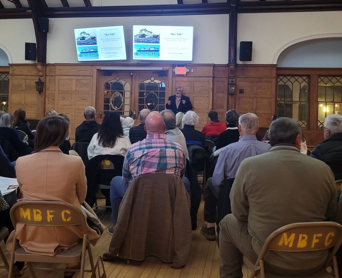 Looking Back — Borough Historian Greg Kelly giving a presentation at Borough Hall on Beach Road, November 2025 — MORE INFO.