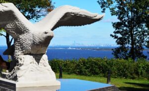 The stunning coastal spot is the Mount Mitchill Scenic Overlook — a 12-acre park in Atlantic Highlands. The location is named for Dr. Samuel L. Mitchill (1764-1831), a physician, botanist, naturalist, and US Senator, who first charted the area. Monmouth County acquired property and dedicated it as park in November 1973. The panoramic view, looking out over Sandy Hook Bay, Raritan Bay, and toward the New York City skyline, is breathtaking (see below).