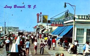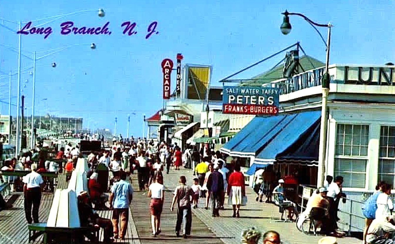 Then at the height of late-20th Century appeal, the Long Branch pier and boardwalk offered: Pier Pub, Café Bar, Num’s, Big Al’s, Stuff Your Face, Junior’s Sam’s Famous House of Ribs, and Jimmy’s Jetty for food and drink. Danny’s Hit-a-Away batting cages, Jungle Golf, Bumper Boats, City Jet, and Cinema 180 for fun. And Wizard’s World and Long Branch Arcades, the Water Slide and Haunted Mansion and psychic”Gifted Sara” for some thrills. Add the great swimming, surfing, fishing and sun-bathing and it becomes irresistible.