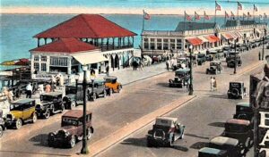 Ocean Avenue, 1920s. The first official attempt to build a “magnificent oceanfront boulevard” with a “boardwalk to its east” came in July 1905, when Councilman J.N. Flanigan suggested building a 125-foot wide roadway and boardwalk from Seaview Avenue to Brighton Avenue. The price tag was $400,000. The city council soundly rejected the plan 9-2, according to the Long Branch Daily Record.