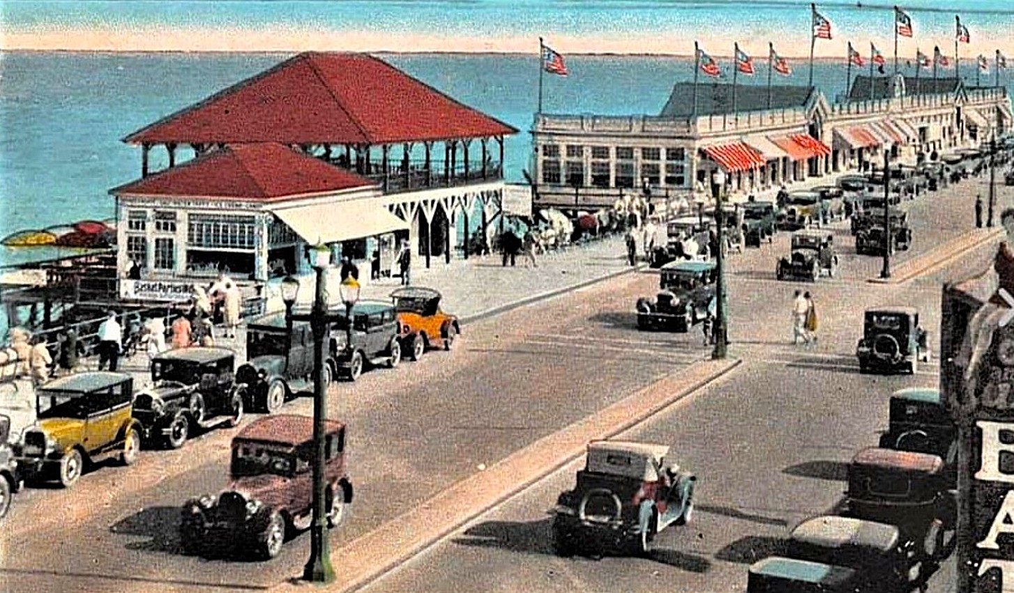 Busy summer day near the Chelsea Avenue Pavilion with the Long Branch Pier in the background, 1920s.
