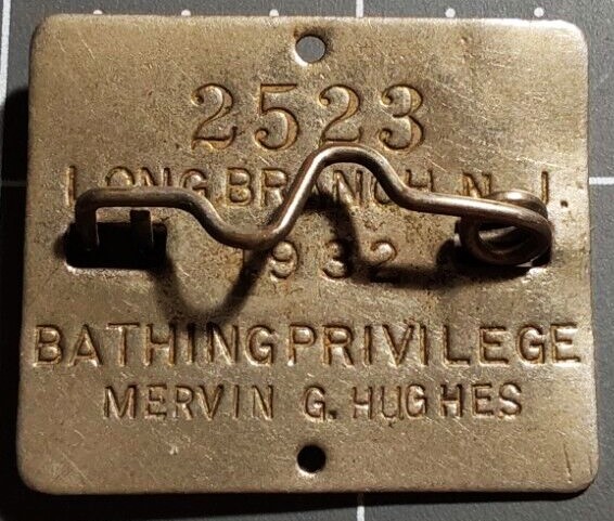 Beach for a Buck — Long Branch Beach Badge, Summer 1932. The city’s first beach “tag system” was begun that season by Mervin G. Hughes, a former city clerk. The annual rate was $1; the daily fee was 50 cents and kids were free.