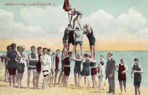 “Beach at Long Branch, NJ,” 1915 postcard. “Safe Beach Day” at Long Branch, NJ — MORE INFO.