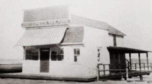 US Life-Saving Service station #5 at Takanassee Beach, 1908. Called surfmen, this incredibly brave group operated here until 1915 under the oath: “You have to go out; you don’t have to come back.” Opened in 1880, the building later housed parts of the beach club.