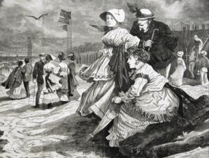 Sand Queens — “The Bathers” by WInslow Homer, Harper’s Weekly, August 1873. This wood-engraving image was done in Long Branch.