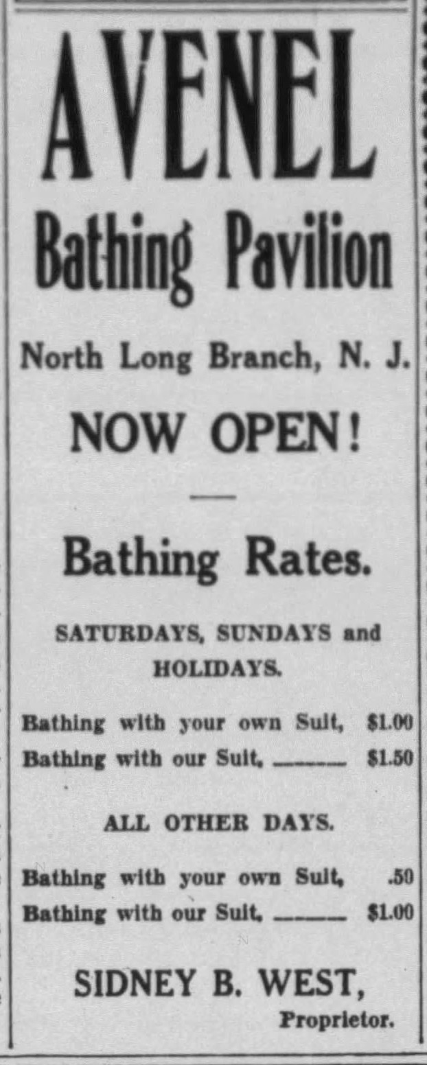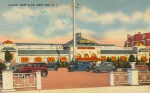 Long Branch had its share of private beach clubs, of course, now gone and mostly forgotten. Among them: White Sands Beach Club, Takanassee Beach Club, Colony Surf Club, Surfside Beach Club, Elberon Beach Club, Shipkin’s Beach Club, Gaskin’s Beach Club, USO Beach Club, Beachcomber Club, Kiernan’s Beach Club, Hollywood Baths, Brighton Baths, Neptune Baths, Colonial Baths, Dixon’s Bathing Pavilion, Miramar Beach Club, Reynolds’ Beach Club, Sand & Surf Cabana Club, and the West End Casino.
