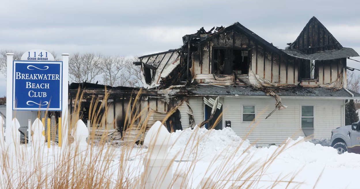Beachcomber Motel fire. Long Branch Daily Record, February 1964. Located at Ocean and Atlantic Avenues, it was unoccupied at the time and Dr. James Tsigounis was the owner.