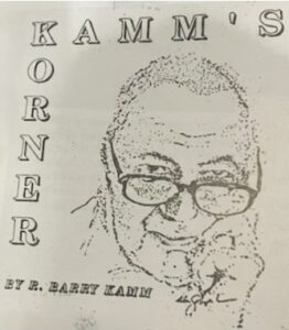 “Mr. Long Branch” — R. Barry Kamm, Atlanticville column logo (Allen Levine sketch). The classic “town-crier,” his popular “Kamm’s Korner” column in the Atlanticville anchored the city’s weekly newspaper for over a decade. The son a city taxi service owner and a 1932 LBHS grad, Barry attended Kent State and started his journalism career at the Long Branch Daily Record in 1942; he also was the city’s public relations man for 17 years. Barry left his mark in the city’s government, fire company, first aid squad and school sports — holding important positions with each before his November 1992 death.