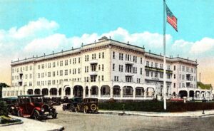 Vendome-Plaza Hotel, 1924. Opened in 1920, the three-story hotel at Ocean and Avery Avenues was badly damaged by fire in July 1962.