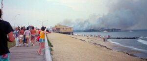 Sad Scene — Long Branch Pier fire, June 1987. Powerful west winds reaching 30 mph fed the destructive fire.
