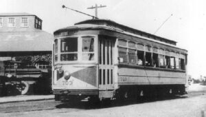 Trolley in North Long Branch, 1920s. The Coast Cites Railway Company ran the cars from North Long Branch to Manasquan. This electric streetcar line closed in 1929.
