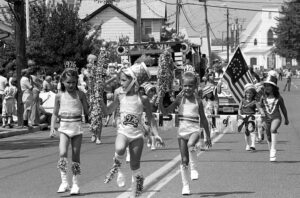Town Pride — A group of spirited young borough residents really got into the celebratory mood dressing in the garb of historic Americans for Bicentennial parade float, July 1976. Among the icons represented were: “Spirit of ’76” (Gi Gi Hinck, Sheila and Shannon Kelly), Betsy Ross (Swazi Charity), Paul Revere (Ennis Murphy), Abe Lincoln (Peter Collora), Molly Pitcher (Joan Collora), George Washington (Susan Collora), Statue of Liberty (Owen Kelly), Pocahontas (Mickey Barham), and Uncle Sam (Joe Bogner).