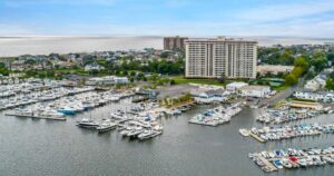 Channel Club Tower and marina, 2022. Original developer Walter Mihm was the son and grandson of Monmouth Beach mayors.