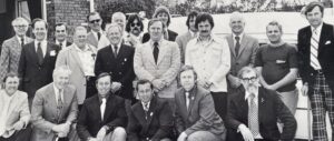 Debt Free — MBFA squad building re-dedication, May 1974. Squad president Walter Burns (l) and donator Jay W. Ross (r). Mr. Ross had paid off the squad’s $40,000 mortgage and the building was re-dedicated in honor of his mother, Margaret.