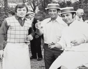 MB First Aid Squad building dedication, April 1973. From left: Walter Burns, Charles Schulz, and Mayor Sidney Johnson.
