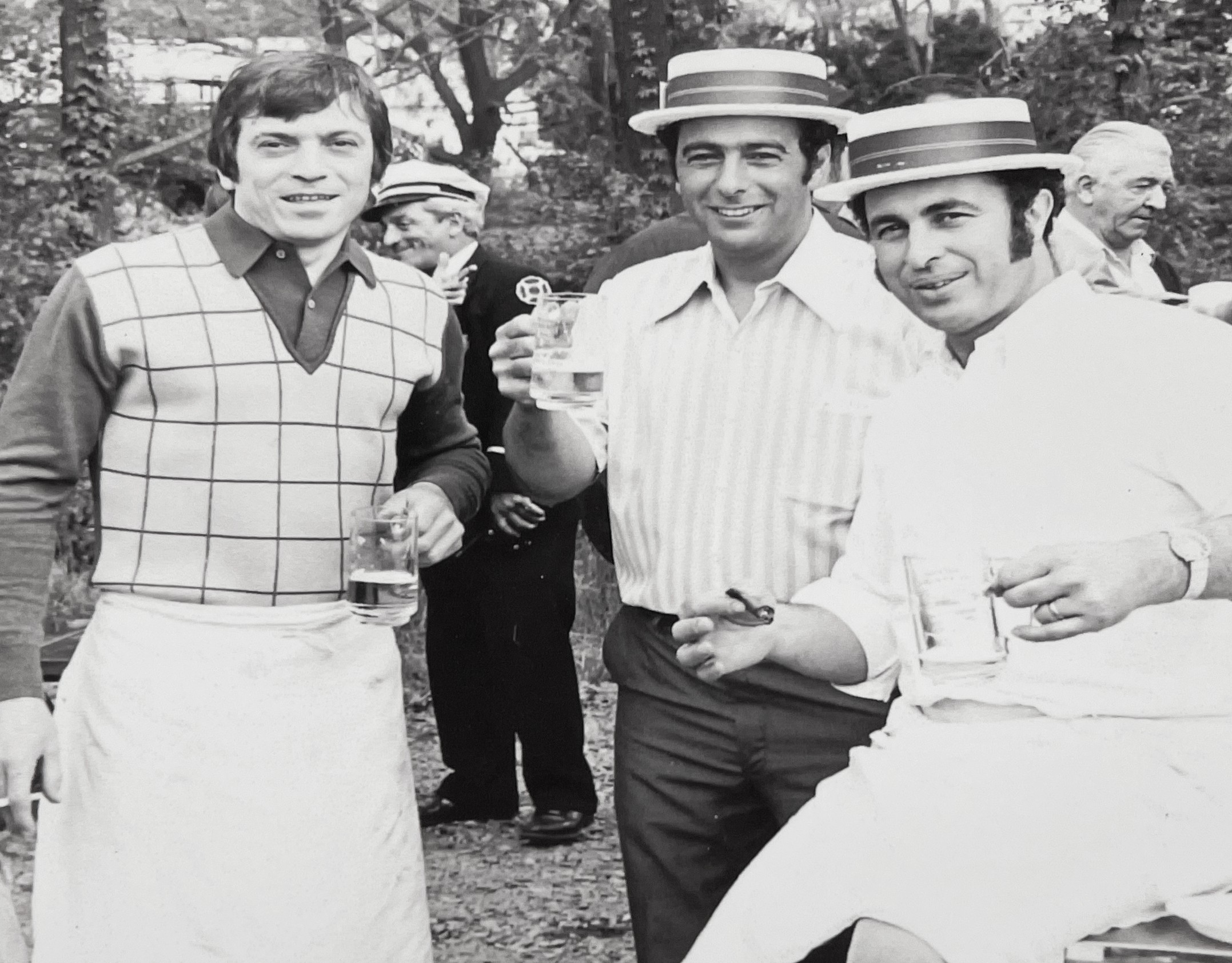 Some $$ — Mayor Sidney Johnson (l) presents a fund-drive donation to squad leaders: Walter Burns, William Heath and Louis Tocci, June 1973.