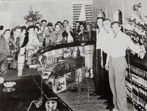 The Family — “Pete’s Inn” bar (in the family’s Willow Ave house), 1943. In front: Grandma Nora Sheridan, Ed and Pat Holden. Behind the bar: Peter Sheridan and Mary Holden.