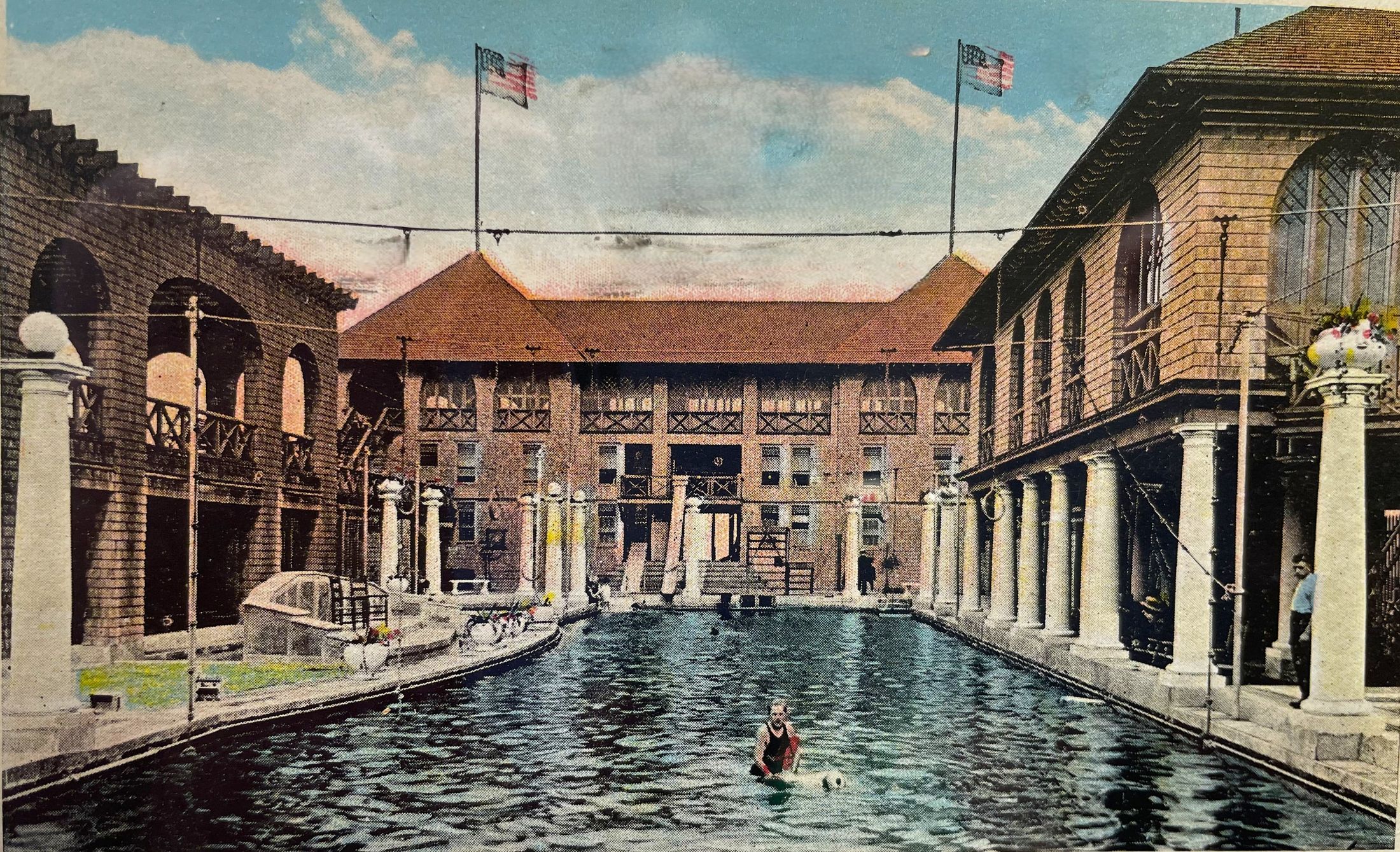 MB Club pool area, 1920s. The structure was “finished in ancient Roman architecture.”