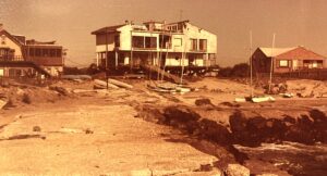 Party Palace — The infamous Sam Weir house on Ocean Avenue, 1970s. This large vacant house on stilts was the scene of a wild TV show/party thrown by radio shock jock Howard Stern in November 1991. He and his entourage, including several area residents, made peculiar fun and games at the repossessed house of crooked area real estate developer Gary Grieser. Some 14 million viewers saw the Channel 9 WOR-TV show — SEE HERE.
