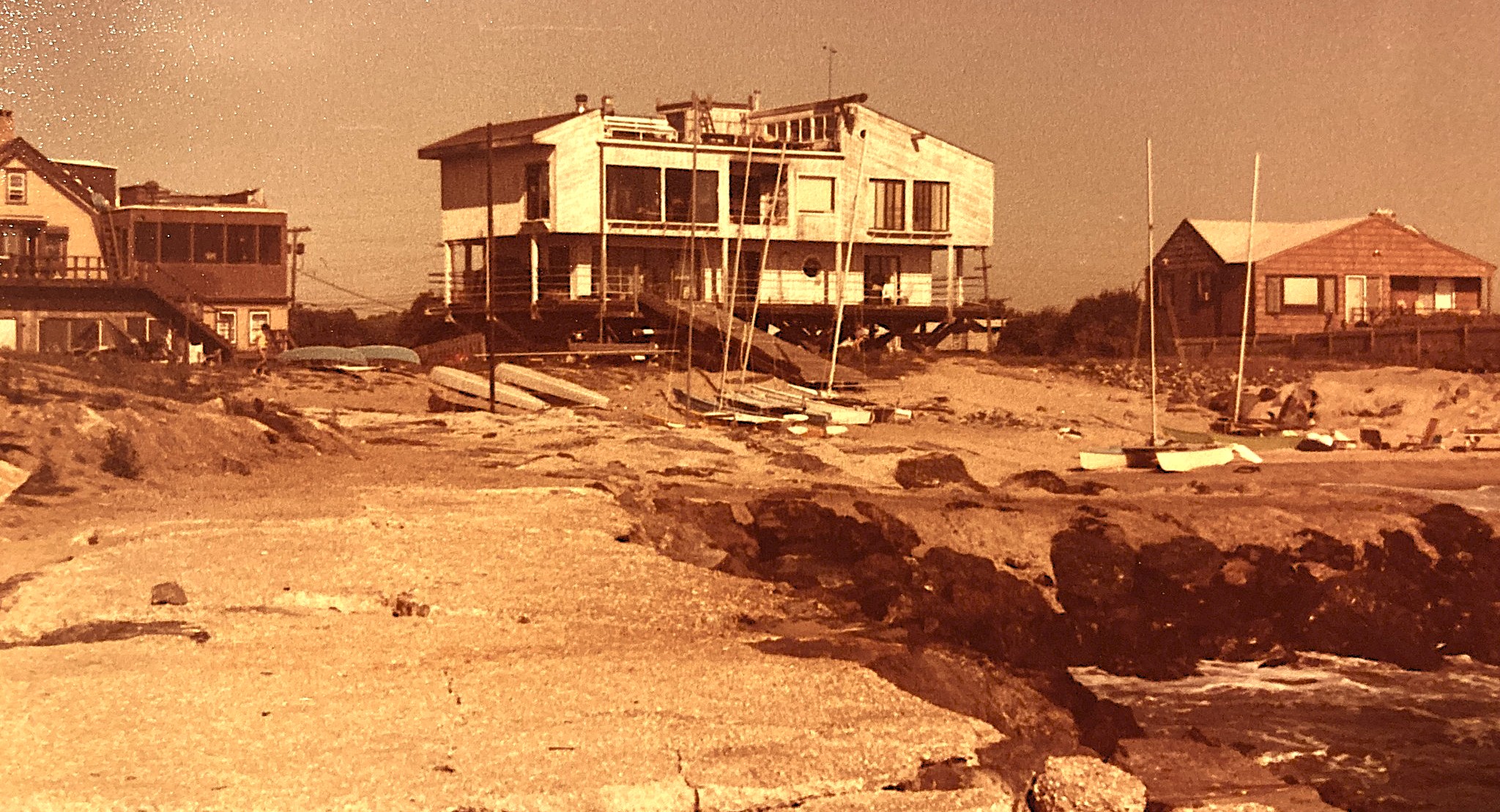 Sam Weir house seen from the oceanside, 1980s. The Ocean Avenue house was built from White Sands Beach Club remains.