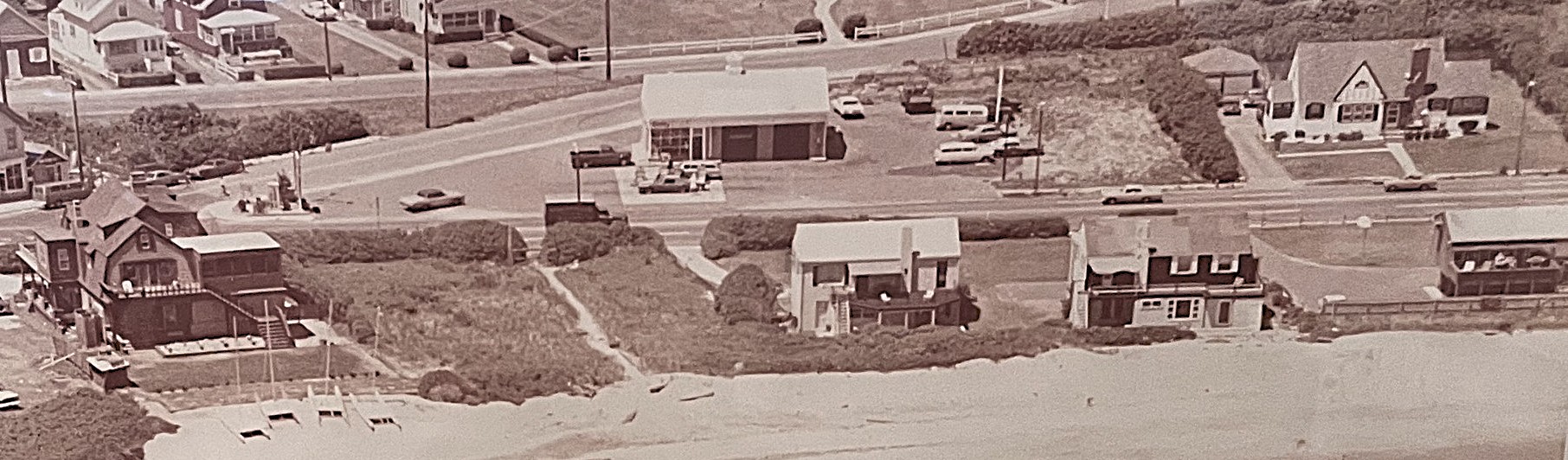New Ocean Boulevard under construction looking north into Monmouth Beach, 1980s. Built by Stavola Contracting Company and designed by T&M Associates, it was finished in late 1983 for about $3 million. Note the Getty station at left.