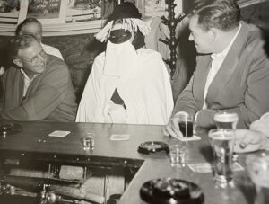The Monmouth Beach Inn was “formally opened” in October 1944 by Theodore Suszynski (operating 6 days a week, from 11:30 am to 1 am). Set on three acres of riverfront property, by then the inn had two bars, four dining rooms, a kitchen, and four fireplaces. It also had a pool table and shuffleboard. There were rooms for rent upstairs. The MBI prospered during the post-war years. It was a steady advertiser in the local newspaper and was consistently seeking more wait-staff. It gained a reputation for its fun-loving patrons (“loud-talking” and “boisterous-singing”) and party atmosphere (“door-slamming” and “horn-blowing in the parking lot”).