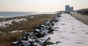 Coast is Clear — The borough’s two oceanfront high-rise condos (at the top) — “The Admiralty” and “The Shores.” Spring 2025.