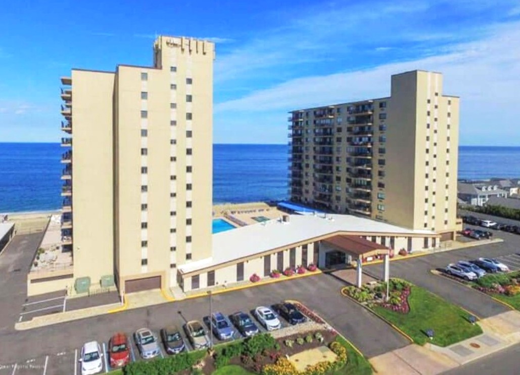 Side-by-side along the Monmouth Beach shoreline — “The Admiralty” and “The Shores” high-rise condominiums, 2016.