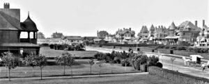 “High Society” — 32 Ocean Avenue (l) looking north with massive summer cottages along the coast, 1905.