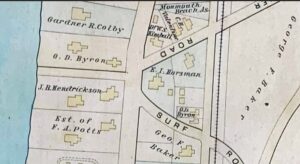 The structure can trace it roots back to official Monmouth Beach development in the late 19th century. In November 1884, Edward I. Horsman bought an oceanfront lot in Monmouth Beach from Edward A. Walton paying $3,000. Considered a “Pioneer Summer Resident,” the fabulously wealthy Walton also owned several large lots all over the exclusive seashore settlement. He built the town’s first massive cottage on Ocean Avenue in 1871. Located just south of where today’s MB Club stands, it burned in 1911.