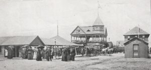 During boom summer seasons the resort offered a wide variety of activity — ocean and river swimming, boating and fishing, sun-bathing, a restaurant and nightclub, a movie theater, roller-coaster and merry-go-round, a hotel, bathhouses and private cottages. Always a showman, Sandlass had most of the buildings designed in the Victorian style of architecture. Access to the resort could be gained by foot, train, boat or auto.