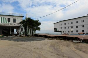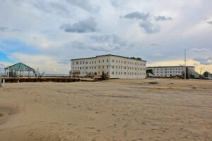 In the Ship Ahoy section there is a photo with the caption, “Ship Ahoy Beach Club and Motel, late 1960s. Dual ocean-side pools were added in 1959; wrecked in 1962 and quickly rebuilt.” Yes, SA had a little kiddie pool just to the left of the larger pool but it doesn’t show. The pool that does show in the photo on the far left is the Sandlass/Sands pool.